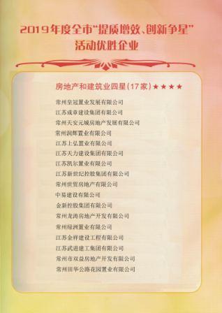 3月10在常州市委市政府召开的2019年全市“提升增效、创新争星”活动表彰大会上,我公司被评为房地产和建筑业四星企业,溧阳只有两家企业获得此殊荣。