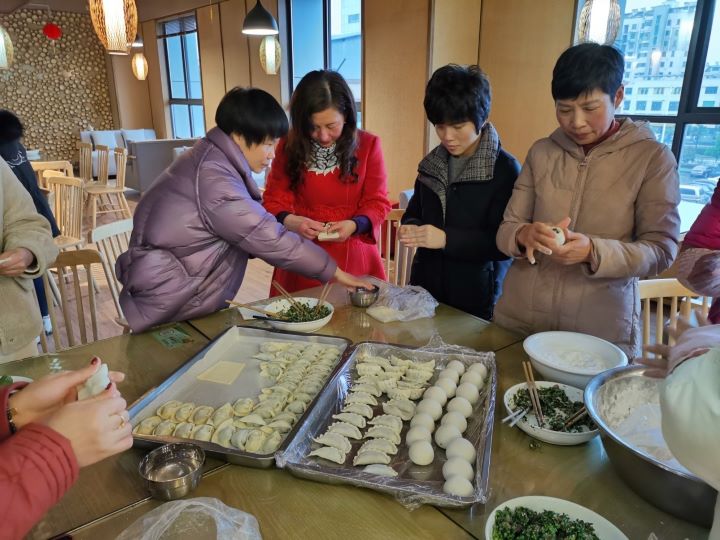 晚上大家一起动手包起了馄饨、饺子、团子,在这个特别的日子里,公司领导仍不忘对大家的关怀,特地赶来和我们共进晚餐,为我们送上祝福。