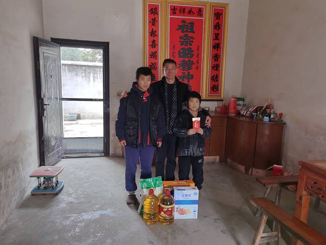 接着一行人来到上兴镇老河村刘宸郗家中,看到他们一家四口人挤在一间二十几平方的屋子内,大家心中不禁感慨万分。孩子们看到我们带来零食等慰问品非常开心,刘宸郗奶奶流下了激动的泪水,连连说感谢公司领导对我们全家这么关心,真是无以回报。张主任则鼓励他们要坚定信心,坚强面对生活和困难,并送上了慰问品和慰问金。