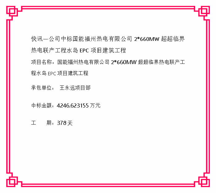 快讯一公司中标国能福州热电有限公司2*660MW超超临界热电联产工程水岛 EPC项目建筑工程