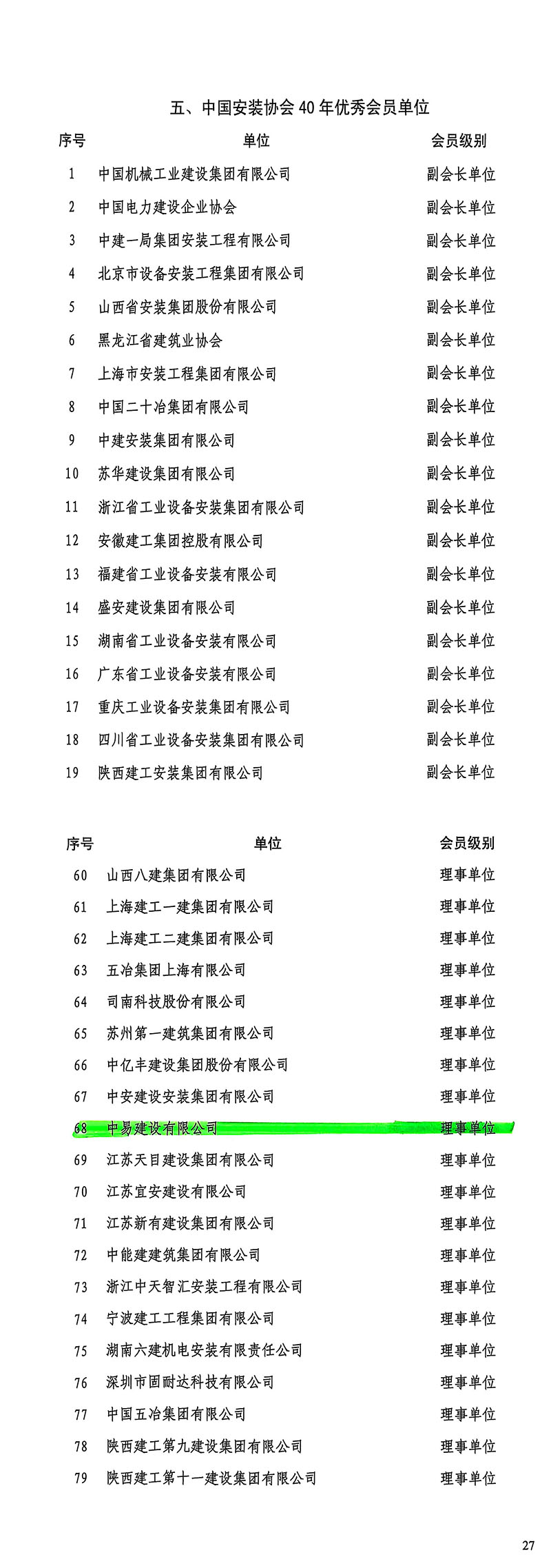 大会汇聚全国安装行业精英力量,总结协会四十载推动行业进步的丰硕成果,部署未来发展规划。同时协会对 “40 年突出贡献者、优秀会员单位” 进行表彰,中易凭借多年来在行业内的深耕积淀与突出贡献,荣获 “40 年优秀理事单位” 称号。 此次荣誉既是协会对公司成立以来深耕行业的高度认可,更是前行的动力。未来公司将继续以理事单位的责任担当,积极参与协会各项工作,与行业同仁共推安装行业数字化、绿色化转型,为行业高质量发展添砖加瓦 。